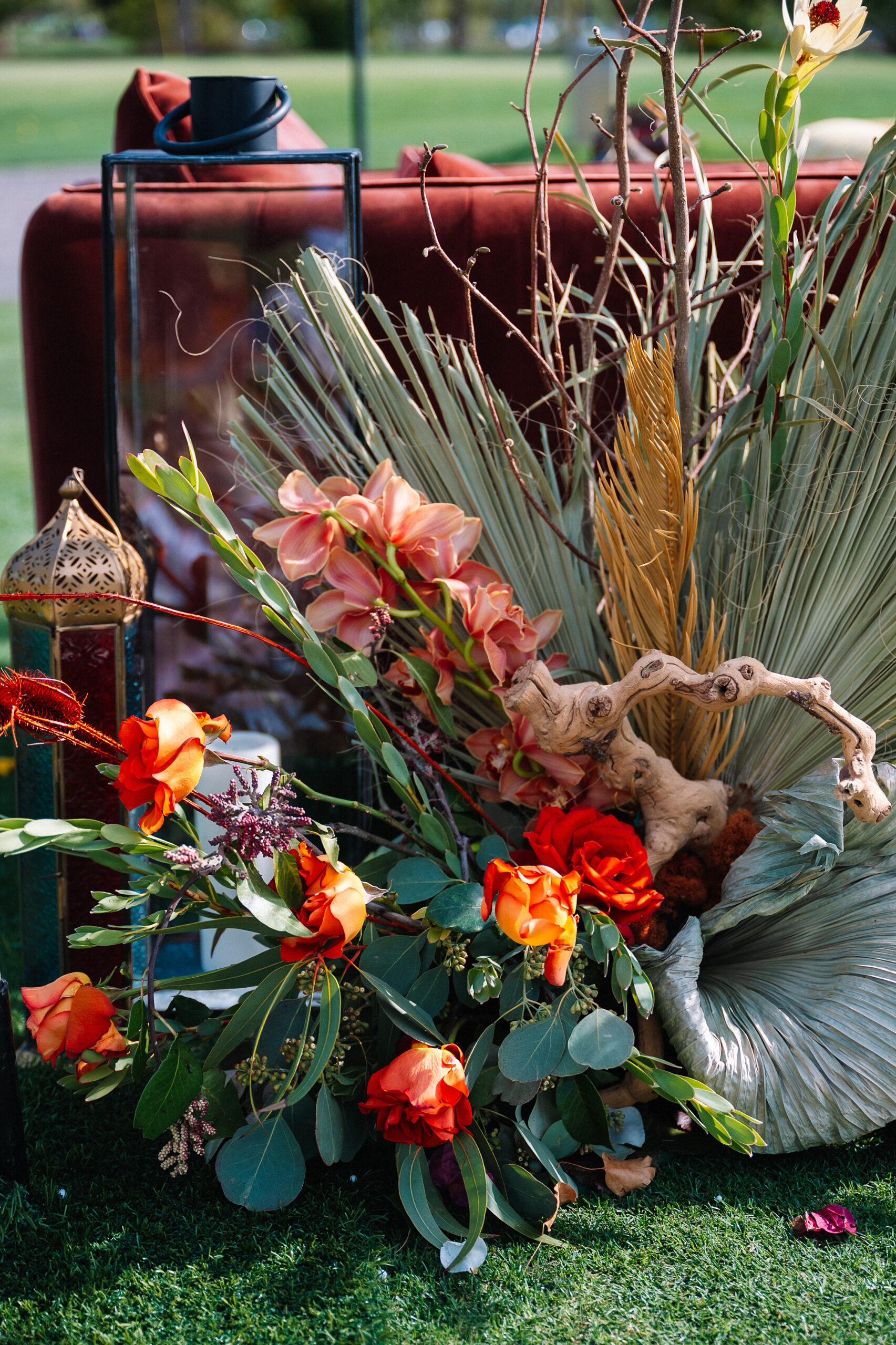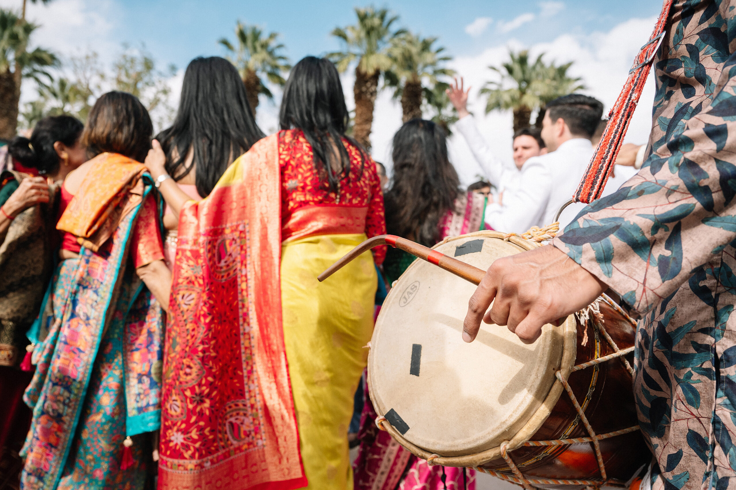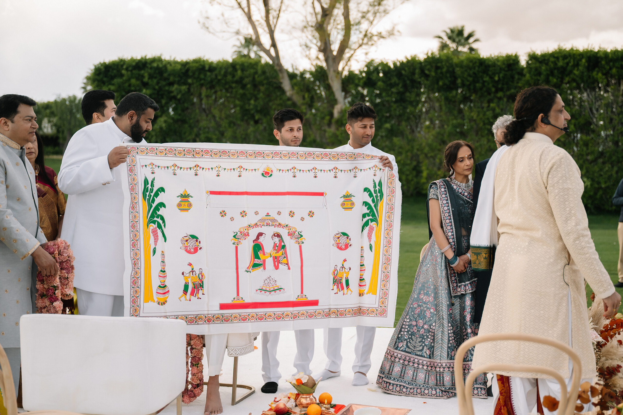 The Sangeet, a prewedding ceremony, featured a midnight in Marrakesh theme. With a palette of jewel tones, the East Lawn of Indian Wells Golf Resort colorfully popped with props such as Moroccan doors & pillows. Typically, the Sangeet Ceremony presents the two families with an opportunity to get to know one another better. Singing and dancing offer common interests to bridge the gap of the unknowns, allowing fertile ground for the union to flourish and prosper. But for Saagar, Janki, and their families, the need to get to know one another was not there. They have known each another for over two decades. Having met when she was only five years old, Janki remembers how nice it was to build a relationship on friendship prior to becoming Mr. & Mrs.