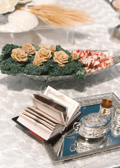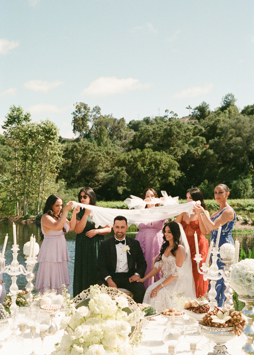 Their ceremony was held on the lawn overlooking the vineyard. Persian traditions, such as the Sofreh, were incorporated, representing all that the bride and groom would like to take into their marriage. Honey was chosen, reflecting the desire for bringing in the sweetest of things into their life as Mr. & Mrs.