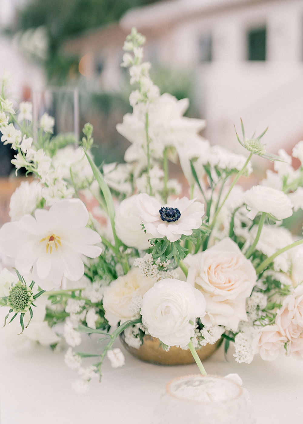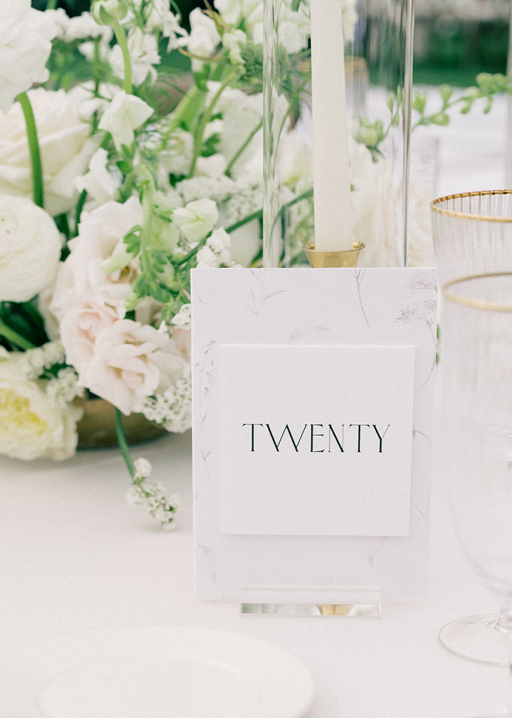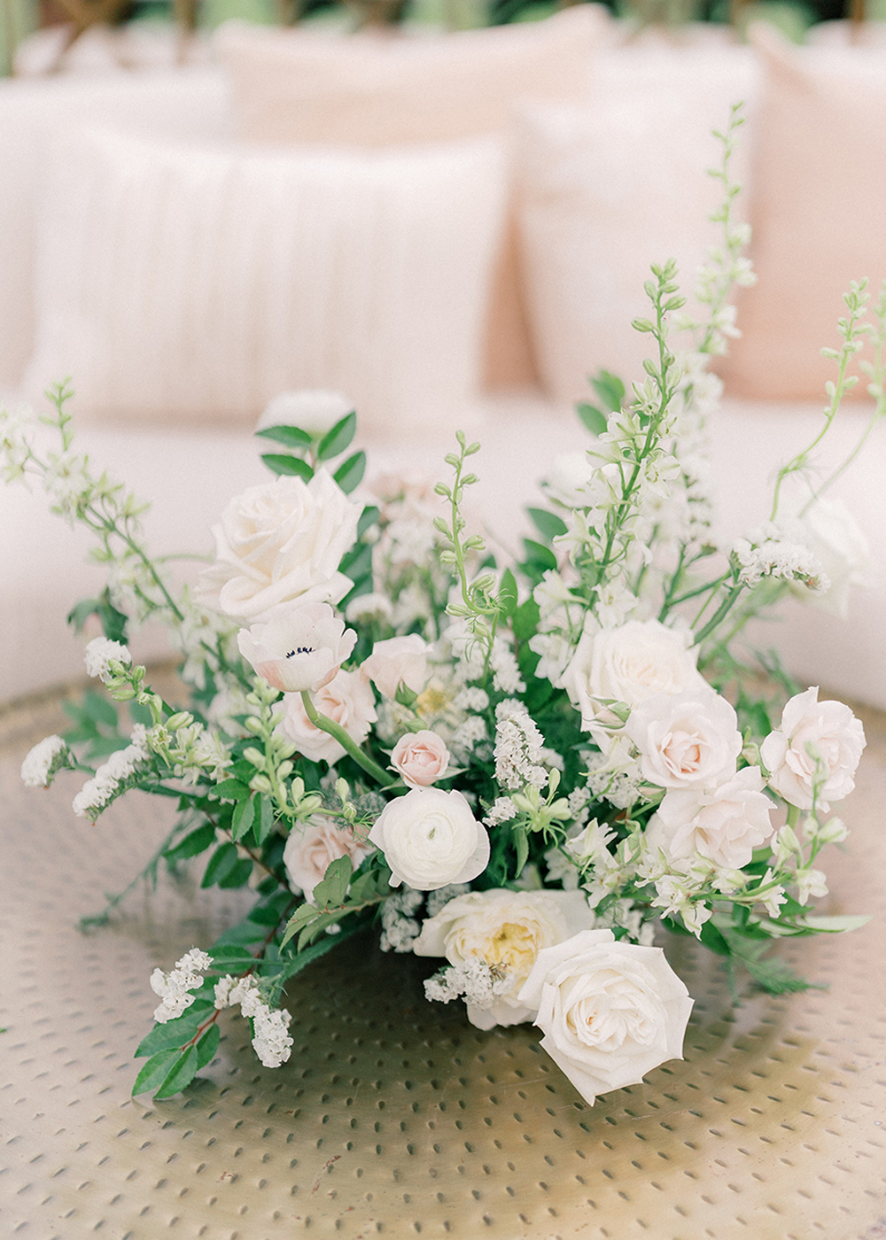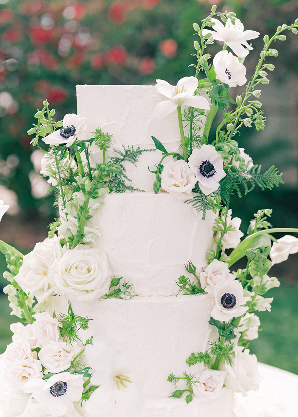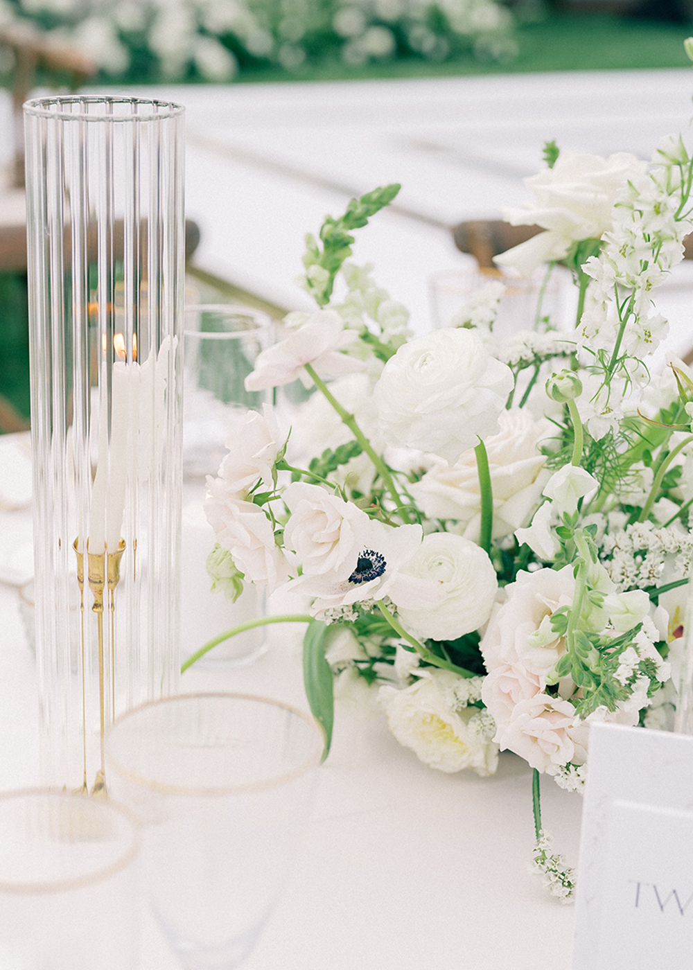 The couple desired a wedding celebration that reflected their love story—romantic, classic, elegant, and everlasting. Imagine a whimsical wedding of white florals and greens, cascading crystal lanterns, and twinkling lights under a starlit sky. Adjacent to an enchanted tree, beautifully situated in the center of lush and fragrant gardens, is where the ceremony was held. A corridor of white florals graced the edge of the walkway that led to the tree and enveloped the trunk, as if to say they had been flourishing there forever. Grace wore an exquisite white gown that flowed and even glistened in the sun’s light as she walked toward her groom. Alex was quite dashing in his classic black suit as he awaited his soon-to-be bride.