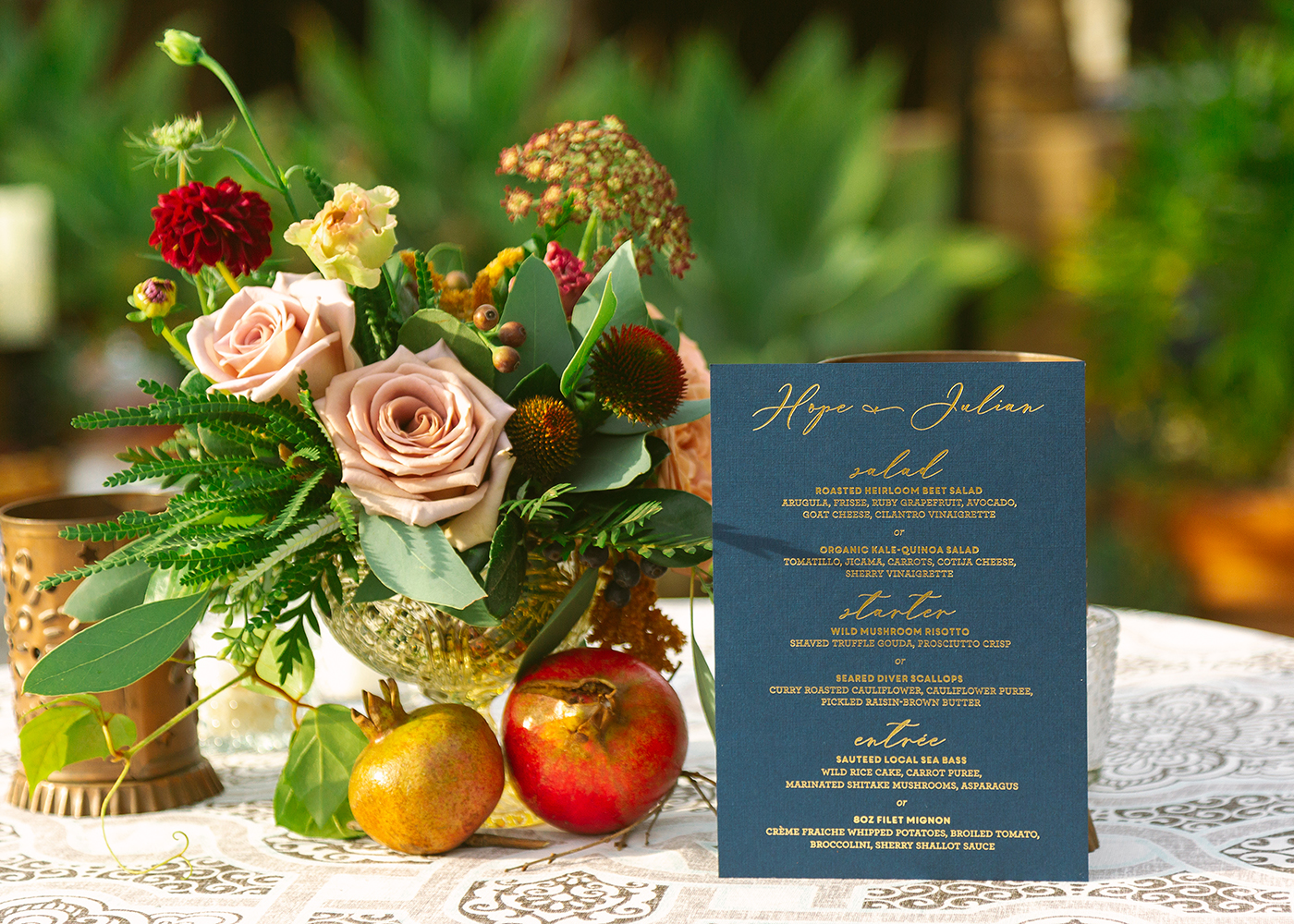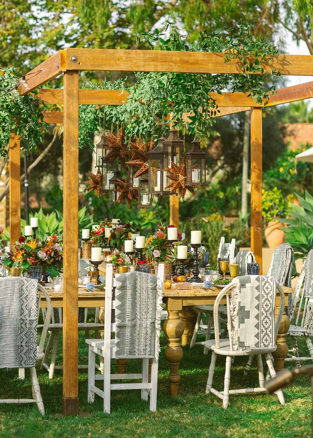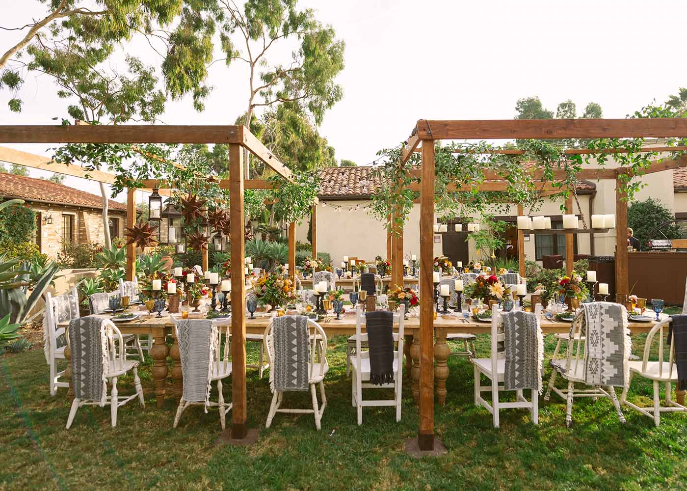 The couple’s vision for the evening was “Bohemian Eclectic” with Spanish and Moroccan influences, playing beautifully off of, and inspired by, the Spanish-style hacienda and gardens at the Estancia La Jolla Hotel & Spa.