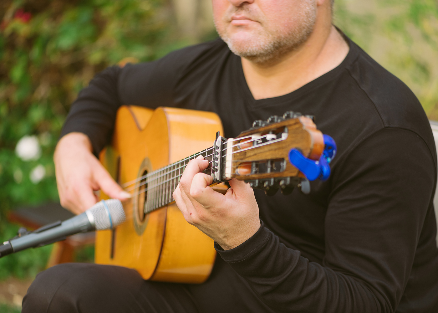 For Hope and Julian Scott, their wedding “was a rich tapestry of details: the beautiful florals; the amazing rustic reception tables; the sumptuous place settings and menus; our gorgeous wedding cake, the beautiful flamenco guitar,” the bride said. “It was a feast for the senses.”