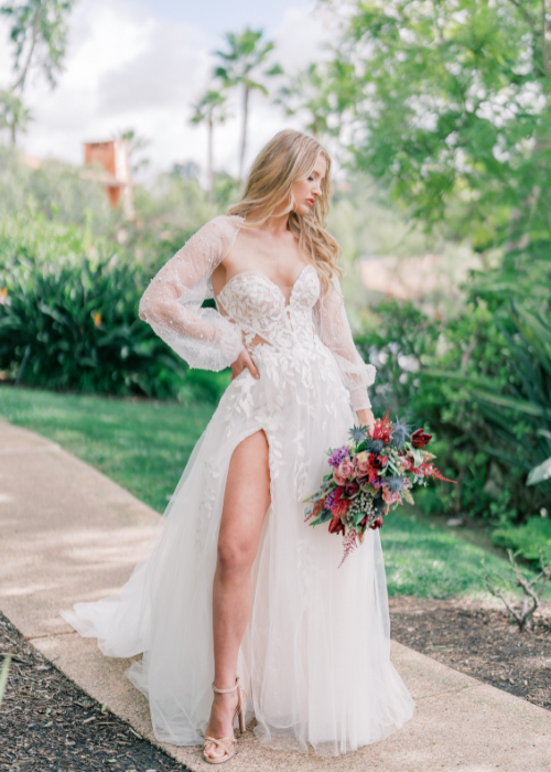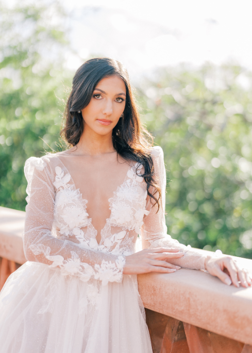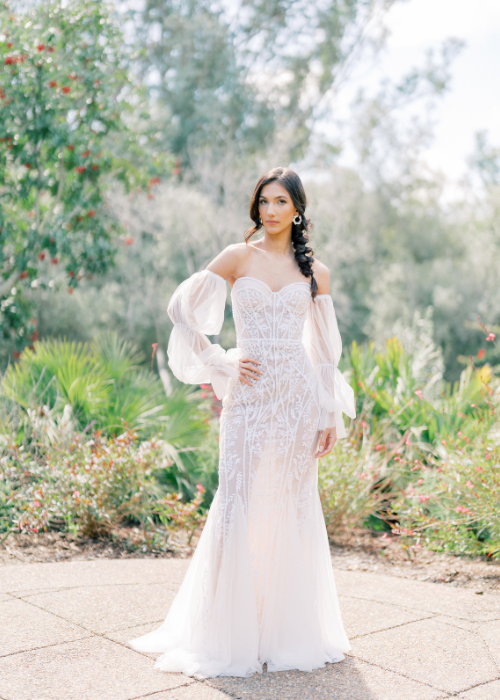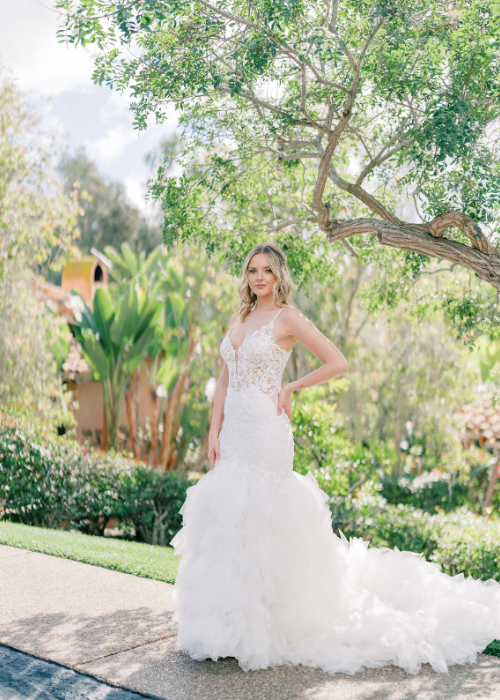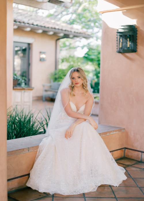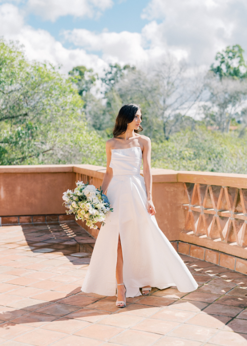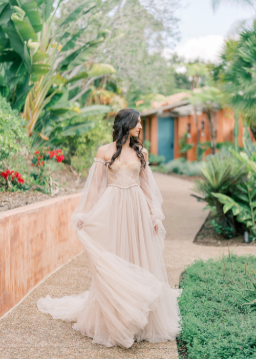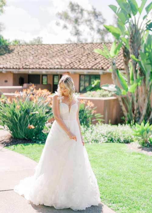 Rancho Valencia Resort and Spa’s beautiful lush gardens and Spanish Colonial Hacienda-inspired architecture create the perfect backdrop for these glamorous gowns