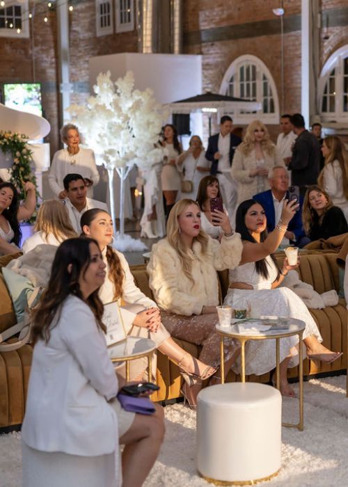 Step into a winter wonderland where the holiday spirit meets wedding industry excellence. Hosted at Brick, this dazzling event was illuminated by the warm, romantic glow of candles from SoCal Candle Rentals, perfectly complemented by Rhodes Audiovisual’s ambient lighting. The snowy theme was brought to life through stunning rentals and design elements provided by Bright Event Rentals, Concepts Events Design, and Lounge Appeal, with breathtaking florals by Casa D’Bloom adding a touch of elegance.