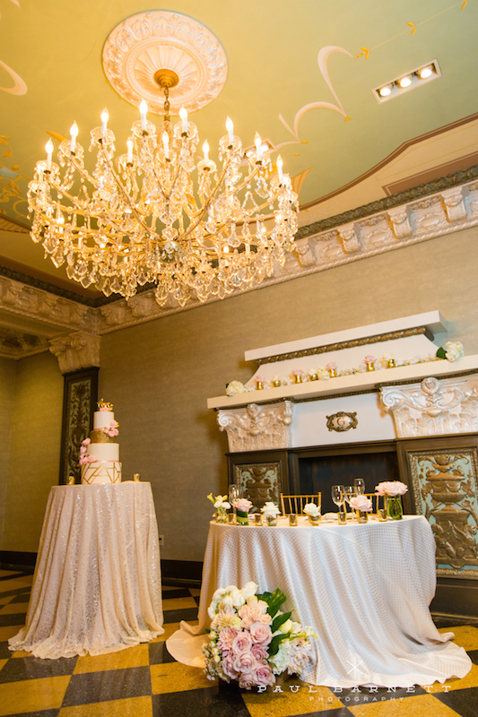 A modern take on every girl’s fairytale dream- This design is the perfect way to feel like a princess on your big day. With the mix of gold and pink this glammed up theme will be sure to wow all of your guests. The chandelier also adds that extra touch of whimsical to this magical day!