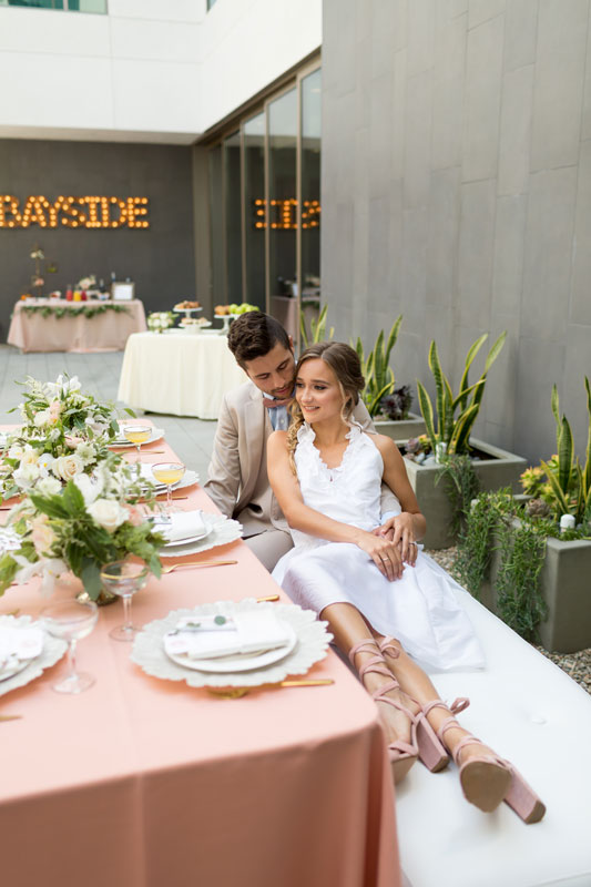 Check out this charming newer hotel in the downtown area called, Hilton Garden Inn San Diego Downtown/Bayside. Known more for corporate they have some great space to use as wedding space. We featured some of their space in this styled shoot for San Diego Style Weddings. This brunch inspired shoot with soft peach and blues was a perfect combo.